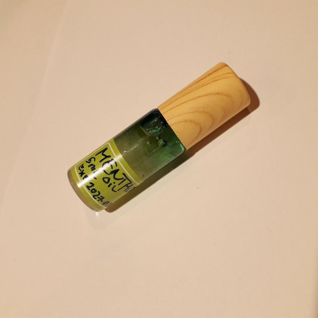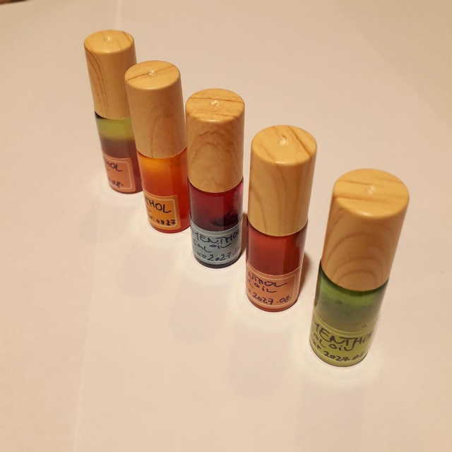 Menthol Crystals with Organic Extra Virgin Olive Oil in 5ml amber glass ROLLER bottle.