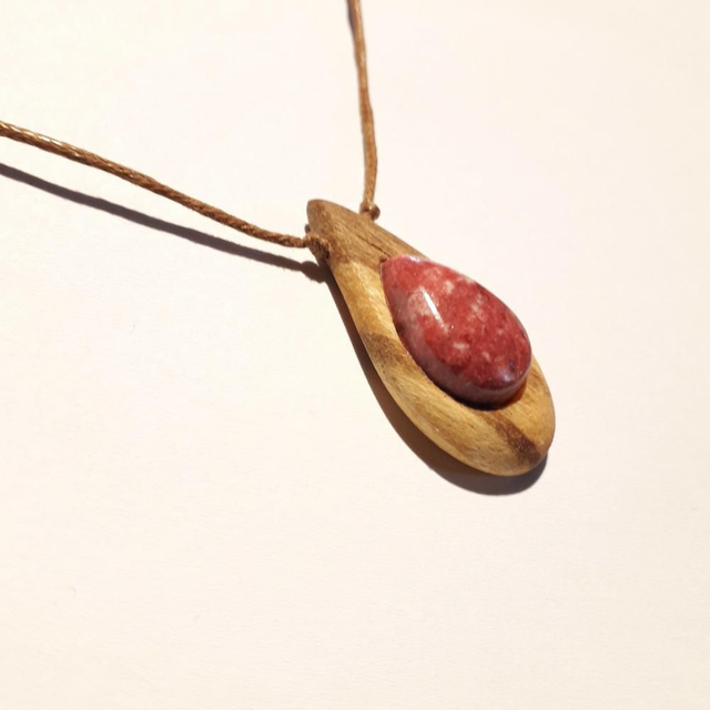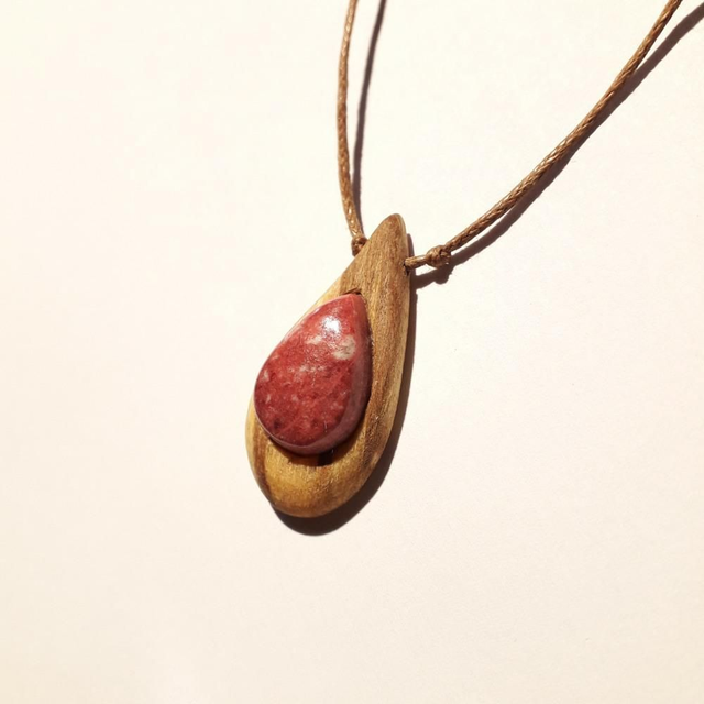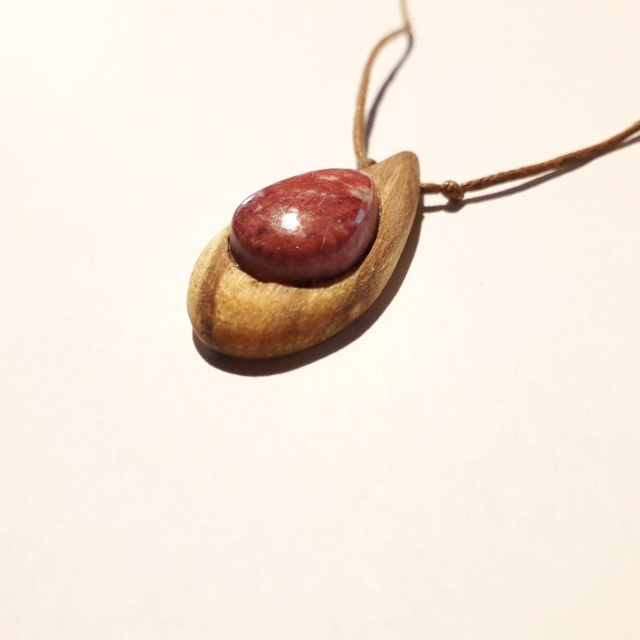 Handcrafted and naturally scented Palo Santo wood necklace with Scandinavian Thulite stone